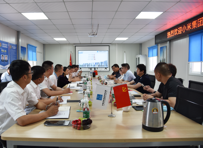 期间,中建四局通过播放企业文化宣传片,PPT汇报的方式,从规划布局、产业链条、保障服务、特色产品四个板块,对小米集团考察团进行了企业介绍。