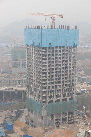 历时328个日历天,经过全体参建人员的共同努力,贵阳双子塔西塔外框钢结构工程顺利完工。随着钢结构工程的结束,每层工期预计可缩短一天,届时,西塔将以5天一层的速度一步步问鼎贵州第一高楼。