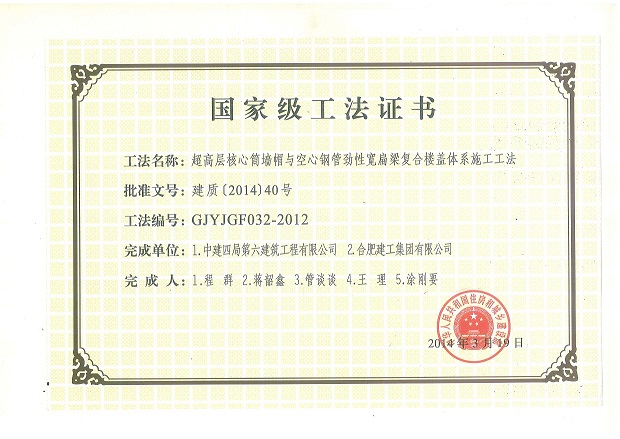 国家级工法:超高层核心筒墙帽与空心钢管劲性宽扁梁复合楼盖体系施工工法